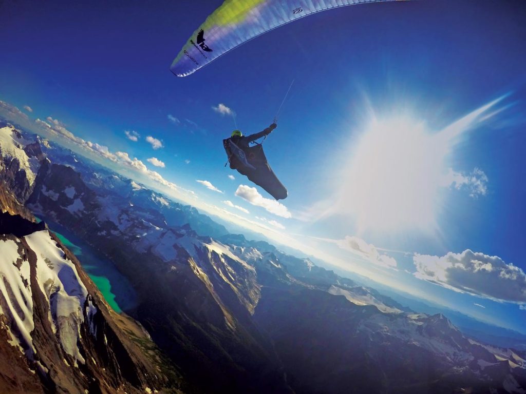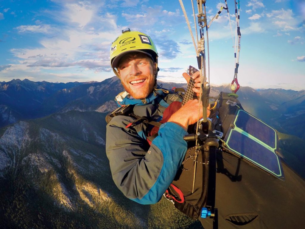 Jordan pilots an Ozone Gliders Alpina 3, a lightweight model for paragliders who hike and fly. “It weighs about four kilograms. Including the harness and reserve parachute, my flying set-up is less than 10 kg.”