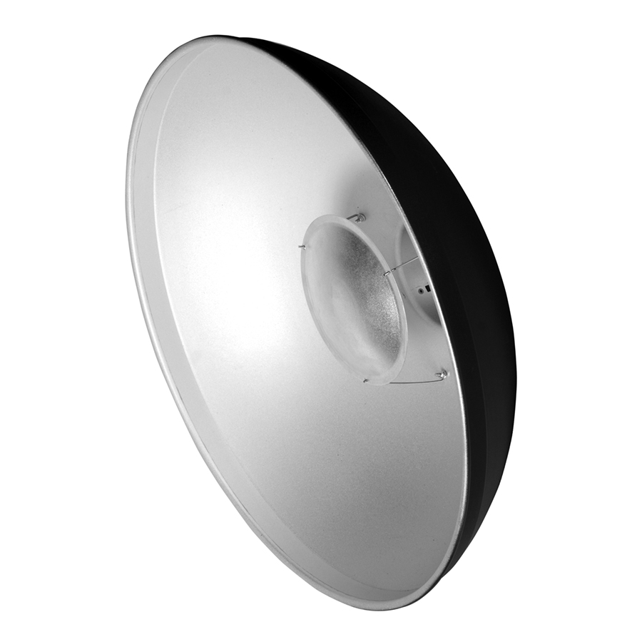 Beauty dishes come in various sizes, and with a couple of internal coating options. The higher contrast silver or the more subdued and softer white versions are the standard choices. Depending on the application, each choice has it’s advantages.