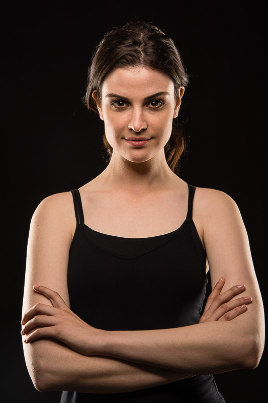 To start, the beauty dish is traditionally placed above the camera and is focused centrally on the subjects face. You will want to experiment with subtle changes in distance to get the perfect ‘focus’ of the light on the face. Positioning the light on the same axis as the camera will cause the shadows from the light to be cast immediately downward, but there is no rule that says it must be done this way. It’s certainly a very good place to start for the traditional look that the dish produces.