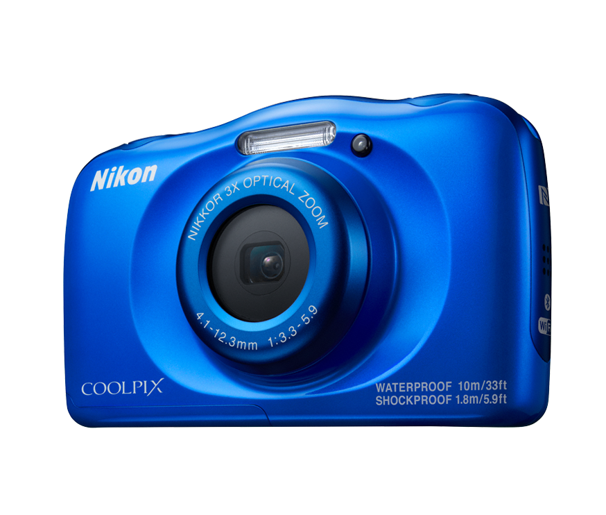 The COOLPIX W100 is waterproof (Up to 33 feet), shockproof to 5.9 feet; cold resistant to 14°F and dustproof, so it’s built for every adventure. Shoot high-quality photos and Full HD videos with stereo sound, while SnapBridge automatically transfers images to your compatible smart device.
