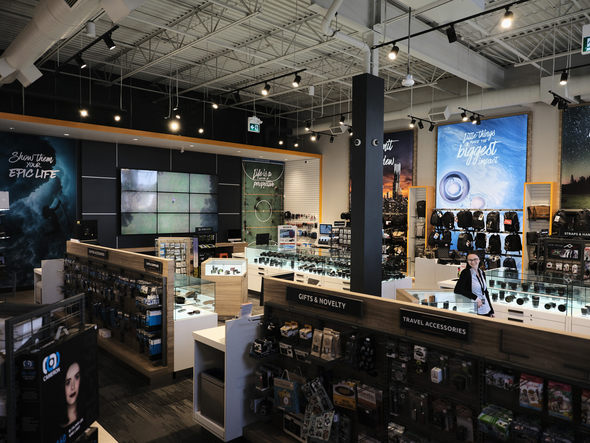 Be welcomed into a more interactive, open and counter-free space where our knowledgeable and helpful staff will help you find exactly what you need. Try out a new camera or camcorder to see how it feels. Peer through that lens you’ve had your eye on. The new store layout allows you to shop by function and category, making it easier and quicker than ever to find what you’re looking for. PLUS our modern bottom lit glass displays showcase the features and differences between hardware and lenses.