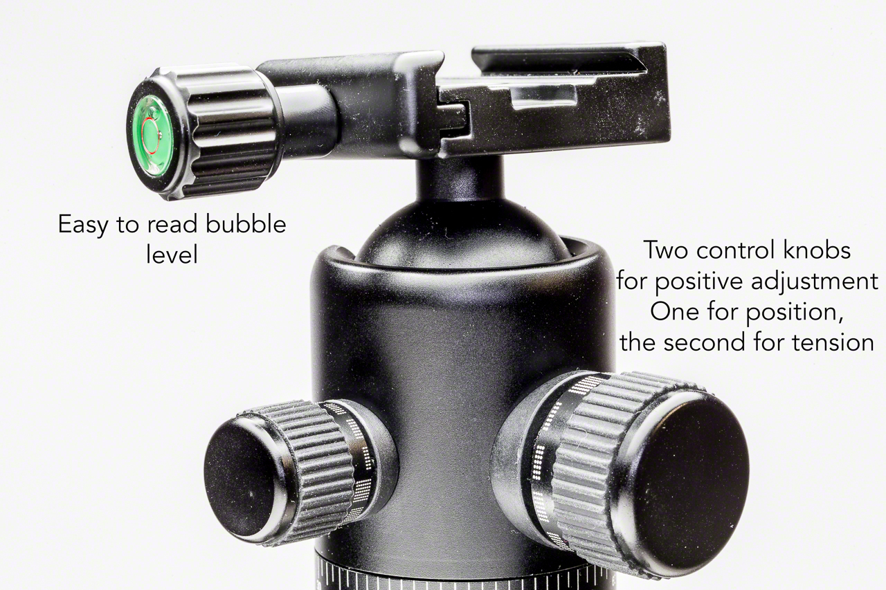 What? You want more? Ok, there are also two bubble levels built in so you can make sure that your horizons are properly straight. You can also remove and reverse the centre column and literally hang your camera inside the leg set to get the camera really close to the ground for those 1x lifesize macro shots. The ball head is already inscribed to make shooting that panorama you want for the living room wall a piece of cake.