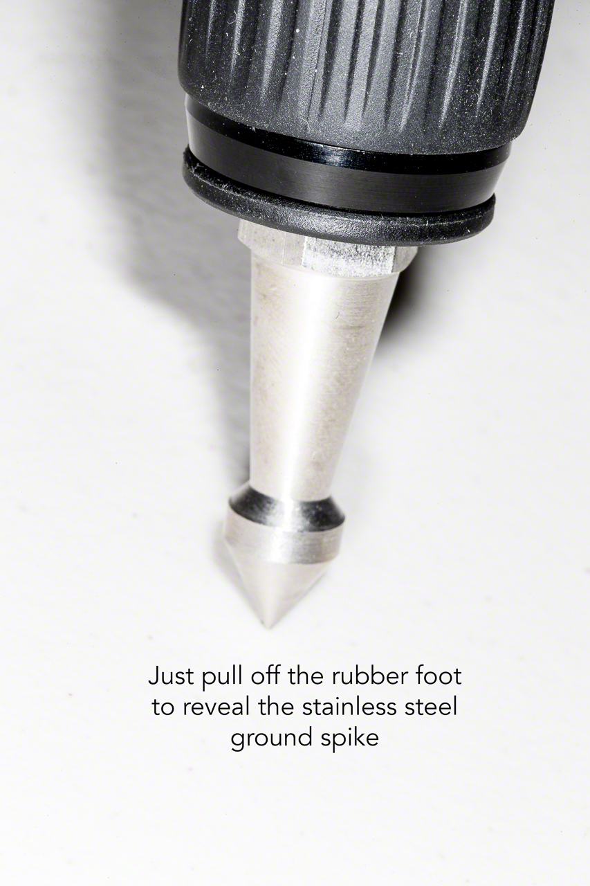 I also really liked that I don’t have to perform major surgery to go from rubber feet to ground spikes. Rubber is great indoors but not so useful when you are on the aforementioned hillside or have the feet planted in a stream bed. Simply grasp the rubber foot and pull and voila! A nice stainless steel ground spike to keep things from slipping around. That just makes sense.