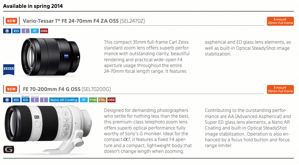 With an addition lens, the Vario-Tessar T* FE 24-70mm F/4 ZA OSS, available early next year.