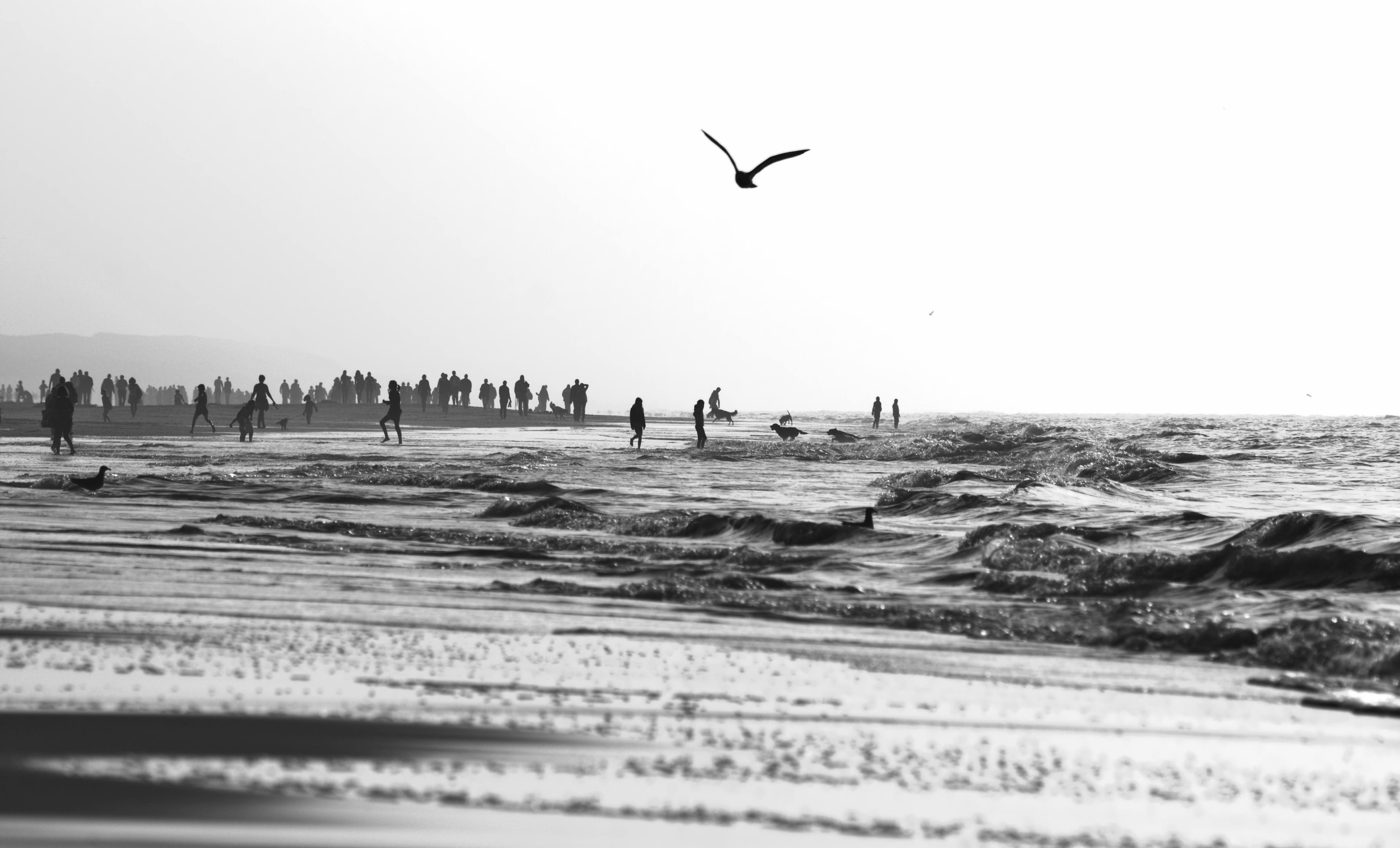 4. Black and White Beach Photography – Dramatic beach images can be accomplished in black and white. Strong sunlight produces a very high contrast black and white image. If you use a polarizing filter and red filter, flare will be reduced and the image contrast will be raised. Set your mode to AV (Aperture Priority) and select a large aperture f/2.8-f/4 to achieve a soft blur and background. Spot metering mode should meter on your subject’s face and it won’t hurt to use your camera’s external flash. The result will be a beautiful image with an almost white background.
